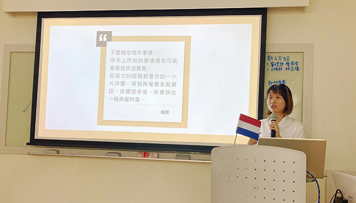 Phoebe 就像日本女孩,所做的简报精彩漂亮,也将自己的英文名字「Phoebe」用中文谐音「非比寻常」做譬喻,让人印象深刻!