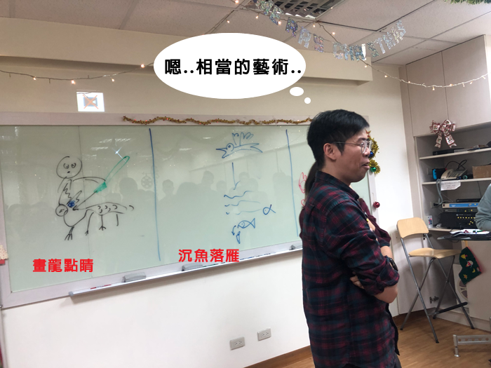 我们队伍画的真的是相当好呢!但是 ... 我好像猜不出来?...(摊手)